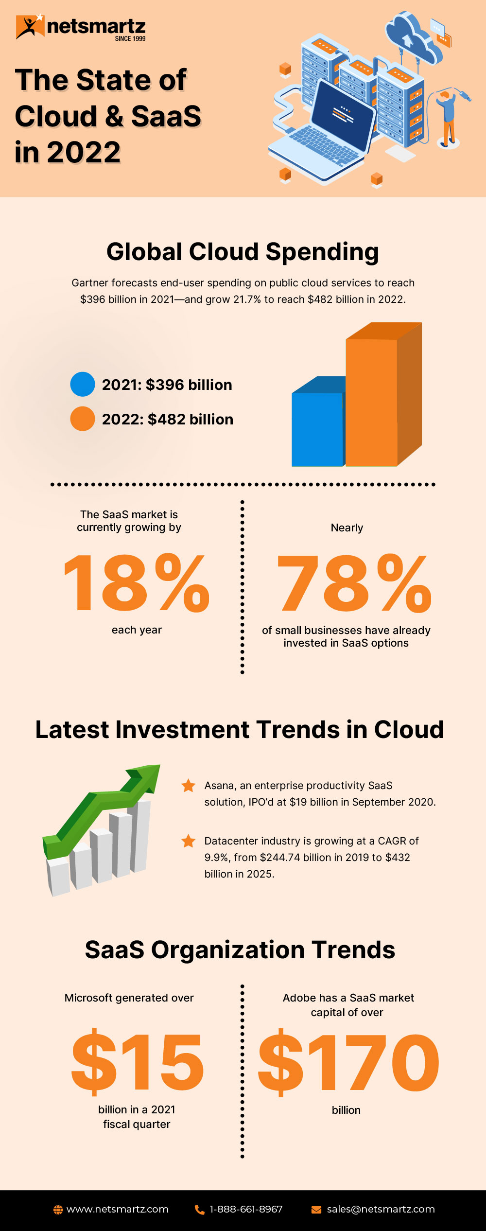 Over the past few years, SaaS and the Cloud have become increasingly popular. The global cloud spending, as predicted by Gartner, on public cloud services is expected to reach $482 billion in 2022.